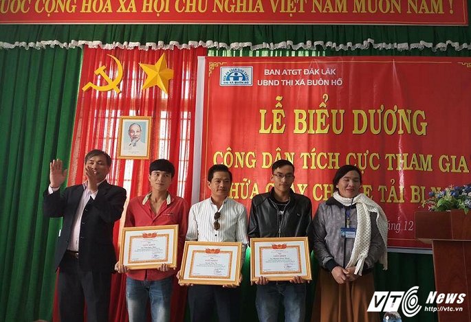 Qua quá trình xác minh, Ban ATGT đã trao giấy khen biểu dương 4 người dân gồm: anh Lê Văn Vũ, Nguyễn Xuân Thuận, Nguyễn Tấn Nam (trú thị xã Buôn Hồ) và anh Trần Quốc Phúc (trú huyện Krông Búk).