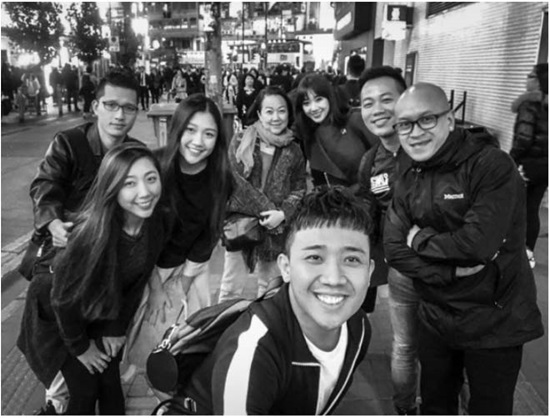 Phút giây vui vẻ của vợ chồng anh cùng người thân và bạn bè.