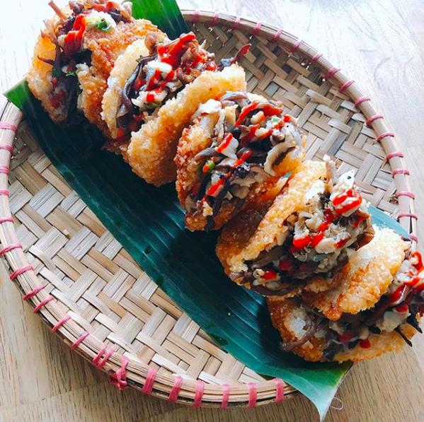 Tuy nhiên, thay vì những món xôi chiên thông thường thì người ta còn sáng tạo ra món xôi chiên kẹp thịt rồi rưới phủ thêm mayonnaise và tương cà chua đẫy đà bên trên. Điều này càng làm món xôi chiên thêm phần hấp dẫn và cũng sẽ rất phù hợp khi bạn đang muốn nhai chút gì đó giòn giòn trong miệng.