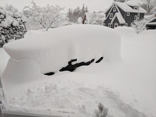 "Hãy thử tìm xem xe tớ ở đâu nào?" Kathy B, một người dân ở Erie đăng lên mạng xã hội tối ngày 26/12. Ảnh: Twitter.