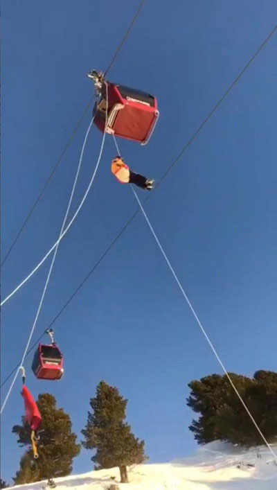 200 du khách đã bị chôn chân nhiều giờ liền trong những chiếc cáp nằm ở độ cao 25 m so với mặt tuyết khi cáp treo bị hỏng vào khoảng 15h theo giờ địa phương.