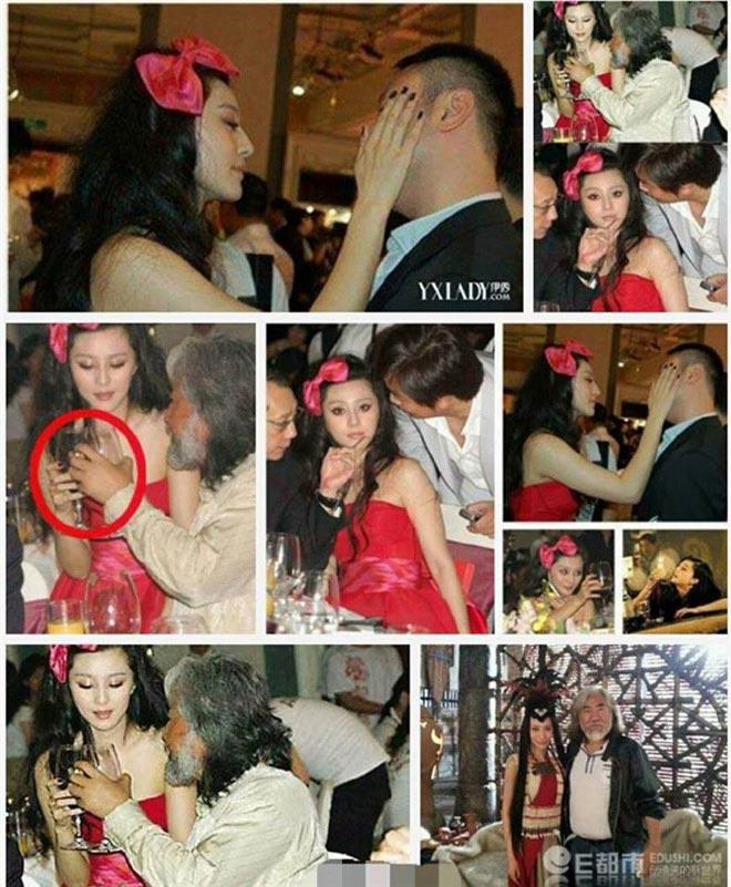 Ảnh ngồi trên đùi đạo diễn Trương Kỷ Trung cùng những cử chỉ thân mật với các vị khách trong buổi tiệc của Phạm Băng Băng.