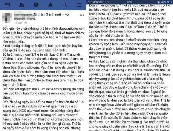 “Vì kết quả xét nghiệm là thai chắc chắn đã chết lưu, tim thai không có, lúc đó mình chết đứng vì không nghĩ là nhanh như thế. Lúc sau mình gọi anh ấy hỏi lại lần nữa là liệu còn hy vọng gì không? Anh ấy chắc chắn với mình. Lúc đấy mình tuyệt vọng lắm chứ vì kết quả của bác sĩ khác gì thánh chỉ đâu”, chị M. viết trên trang cá nhân.