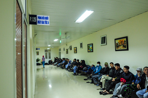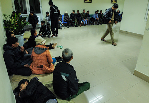 Theo anh Binh và anh Bính, các anh nhận được giấy hẹn 22 giờ đến đây nhưng có hôm, 3 giờ sáng các anh mới bước ra khỏi khu xạ trị để về nghỉ ngơi mặc dù việc xạ trị chỉ diễn ra khoảng 15 phút.