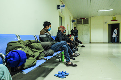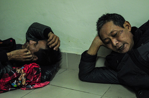 Bệnh nhân ngủ dưới gầm bàn tiếp tân của bệnh viện để chờ xạ trị.