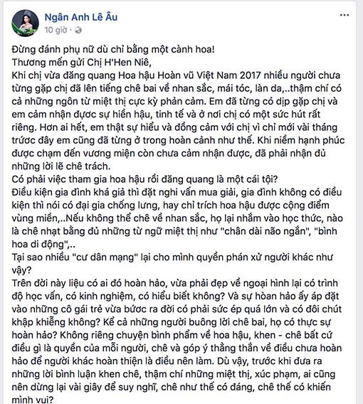 Sau tất cả HH Ngân Anh gửi tâm thư đến HH Hoàn vũ H’Hen Niê