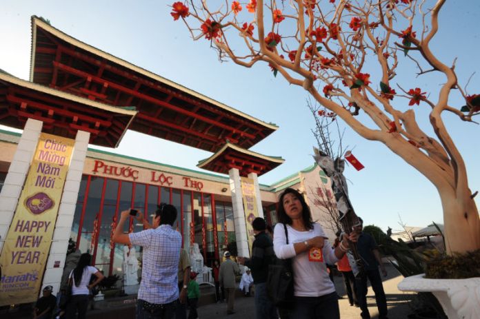 Thương xá Phước Lộc Thọ là nơi du khách phương xa thường đến thăm mỗi khi đến Little Saigon, nhất là vào dịp Tết. (Hình: Dân Huỳnh/Người Việt)