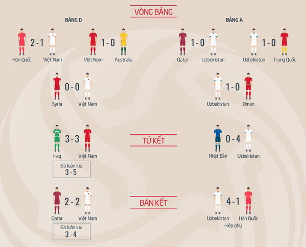 Hai đội bóng mặc dù thua trong trận mở màn, bị đánh giá là những đội yếu nhưng cuối cùng gặp nhau trong chung kết. Việt Nam đã loại những đối thủ sừng sỏ đến từ Tây Á như Iraq, Qatar, Syria, và Úc. Còn Uzbekistan loại hàng loạt đội Đông Á hùng mạnh như Trung Quốc, Hàn Quốc, Nhật Bản và Oman. Việt Nam đại diện Đông Nam Á và Uzbekistan đến từ Trung Á đã làm tất cả những dự báo kết quả bị bất ngờ.