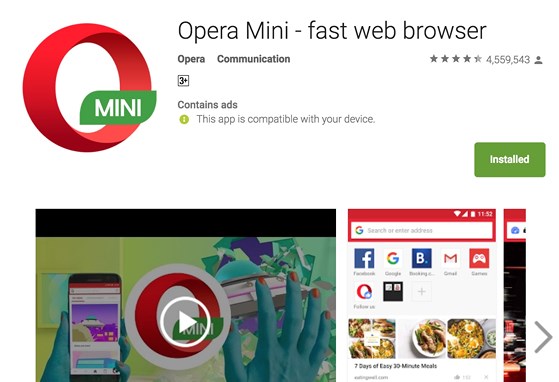 Opera Mini có lẽ là cái tên đã quá quen thuộc đối với người dùng, giúp tiết kiệm dữ liệu di động và tải trang web nhanh hơn. Ngoài ra, nhà phát triển còn mới tích hợp thêm tính năng chặn quảng cáo, do đó, bạn có thể lướt web nhanh hơn mà không bị phiền nhiễu.