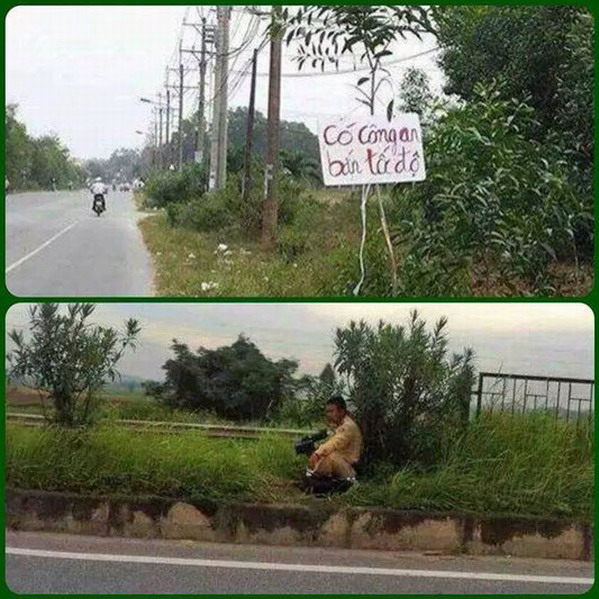 Xem cái kiểu nấp bắn tốc độ của côn an Việt Cộng chẳng khác nào cái lũ cha chú nó, rất rất hèn. Ai dè đàng hoàng là công an mà lại núp như cái lũ ăn trộm ăn cướp.