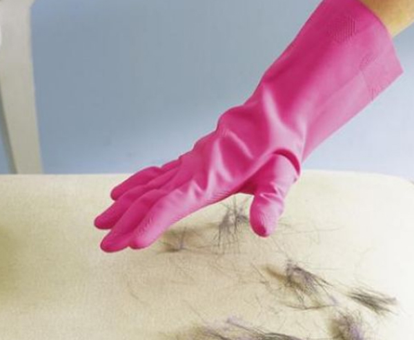 Dùng găng tay cao su vệ sinh bề mặt có chất liệu mềm. Những đôi găng như thế này sẽ dễ dàng lấy đi rác và bụi bẩn bám trên đồ dùng.