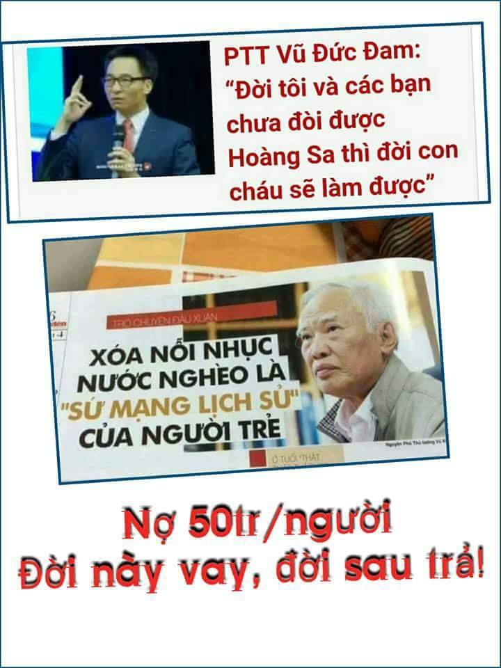 Thảo nào các đồng chí lãnh đạo mới mạnh miệng đẩy tránh nhiệm cho thế hệ con cháu đến thế. Thế hệ tương lai của Việt Nam chúng ta còn lại toàn bọn dân ngu cu đen, bướm đen trông thấy tối thui cả giang sơn thì làm gì mà phát triển đất nước thành Rồng hay Hạc. Bọn này ăn còn không đủ thì sức đâu mà đi lấy lại Hoàng Sa với Trường Sa hở Trời...
