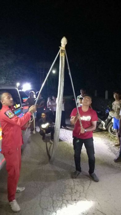 Vào khoảng 23 giờ đêm, lực lượng cứu hộ địa phương ở Thái Lan nhận được tin báo của người dân về hổ mang chúa khổng lồ đột nhập vào nhà ở quận Thung Song, tỉnh Nakhon Si Thammarat, miền nam Thái Lan.