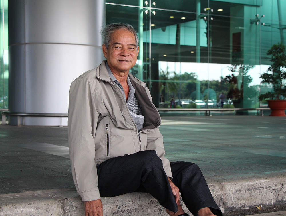 Ông Đặng Văn Viễn (ngụ Hậu Giang) ngồi chờ con gái từ rất sớm ở sân bay Cần Thơ