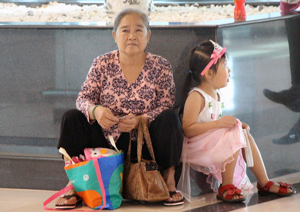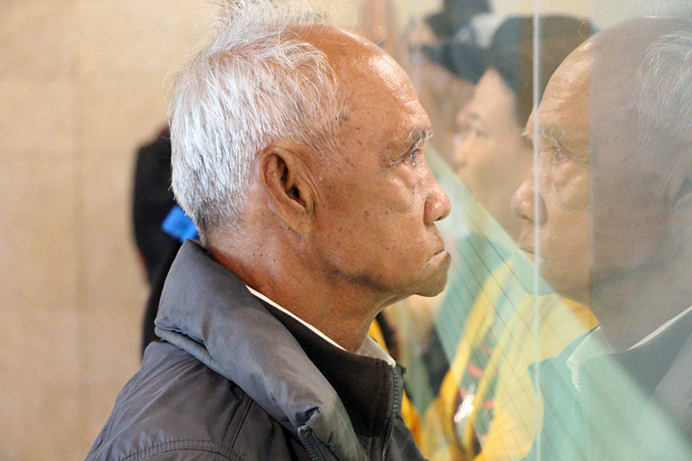 Cùng tâm trạng, ông Lý Khải Vinh (90 tuổi, ngụ tỉnh Sóc Trăng) đứng ngồi không yên, ngóng vào bên trong ga coi con gái út đã làm thủ tục xong chưa.