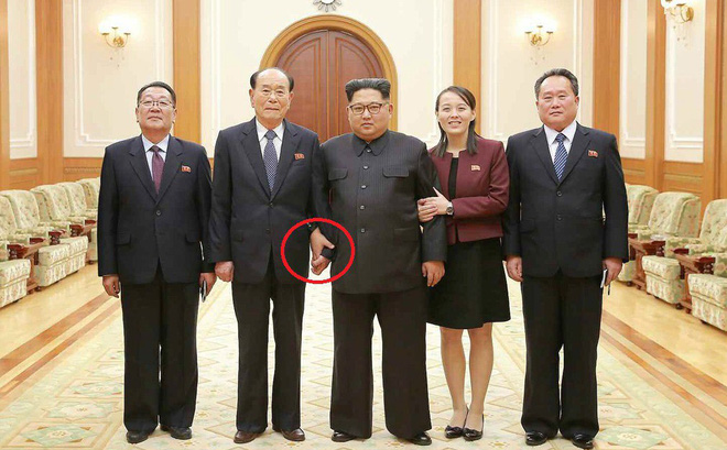Đặc biệt, chi tiết thu hút sự chú ý của giới phân tích phương Tây chính là hình ảnh ông Kim Jong-un nắm tay ông Kim Yong-nam - trưởng đoàn đại biểu cấp cao Triều Tiên thăm Hàn Quốc.