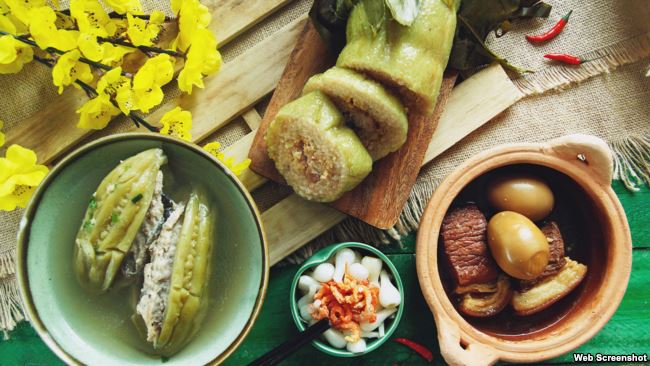 Bà Linh nói: “Hiện tại Tết ở đây có bánh mứt, bánh chưng, bánh tét, các món chua ngọt, củ kiệu, bò dầm chắc chắn phải có trong ngày Tết.”
