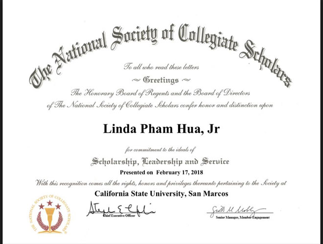 Mới đây, trên Facebook cá nhân, “hot girl thổ dân” vừa chia sẻ thành tích học tập “khủng” đạt được sau 1 năm du học. Cô vinh dự trở thành thành viên của NSCS (The National Society Of Collegiate Scholars) – tổ chức chuyên tìm kiếm những học sinh xuất sắc khắp nước Mỹ để vinh danh và trao cơ hội học tập tốt cho họ.