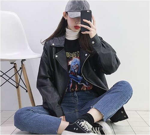 Quần jeans cạp cao và áo khoác rộng kiểu bomber được khuyên dùng để cảm giác chân bạn dài hơn và người không bị quá gầy gò. Thêm một vài món phụ kiện bắt mắt và cách trang điểm nhấn nhá vào đôi mắt sẽ khiến set đồ tưởng chừng rất đỗi bình thường này trở nên thu hút hơn nhiều lần.