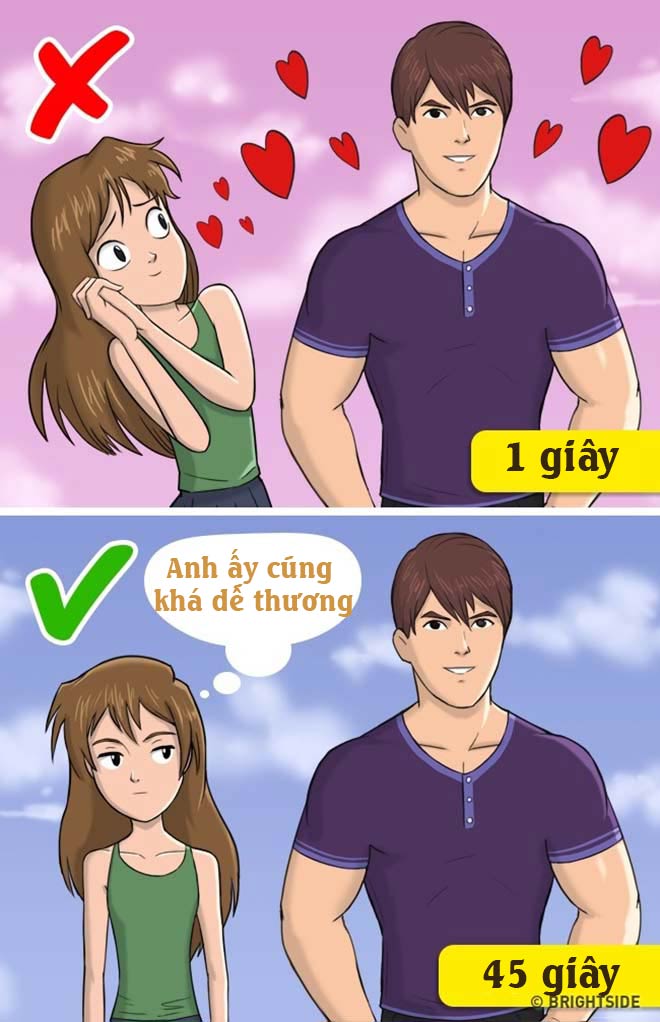 Quan điểm này rất phổ biến nhưng hoàn toàn sai lầm. Có nghiên cứu cho rằng, phụ nữ phải mất ít nhất khoảng 45 giây mới quyết định có cảm tình hay để ý người đối diện hay không.