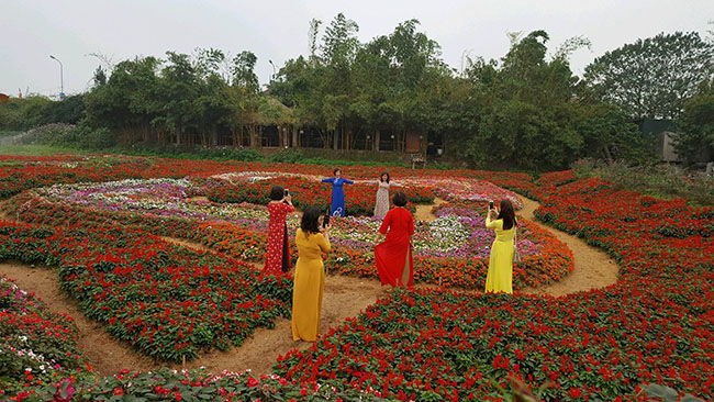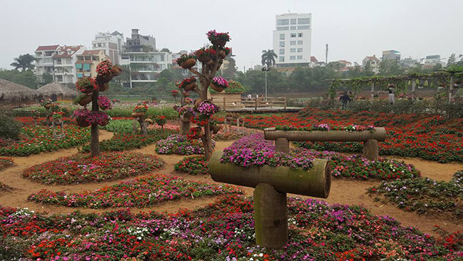Với hàng ngàn mét vuông, thung lũng hoa Hồ Tây với đủ sắc màu như một bức tranh xuân tuyệt đẹp.