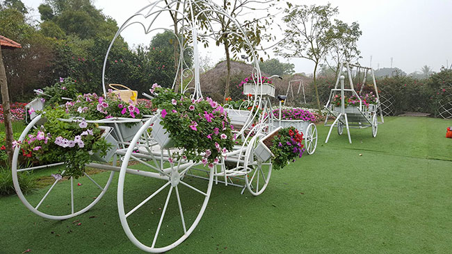 Ở thiên đường hoa này có các loài hoa lạ mắt như: hoa hồng Bungari, túy điệp, hoa cánh bướm, hoa hướng dương, xác pháo,...