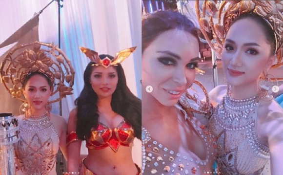 Trong phần thi trang phục dân tộc, Hương Giang lấn át các thí sinh