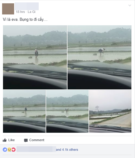 Thế nên, hình ảnh người phụ nữ mang bầu, bụng đã to vượt mặt vẫn một mình cặm cụi cấy lúa đã nhận được rất nhiều sự thương cảm của cộng đồng mạng sau khi được đăng tải trên một nhóm dành cho chị em.