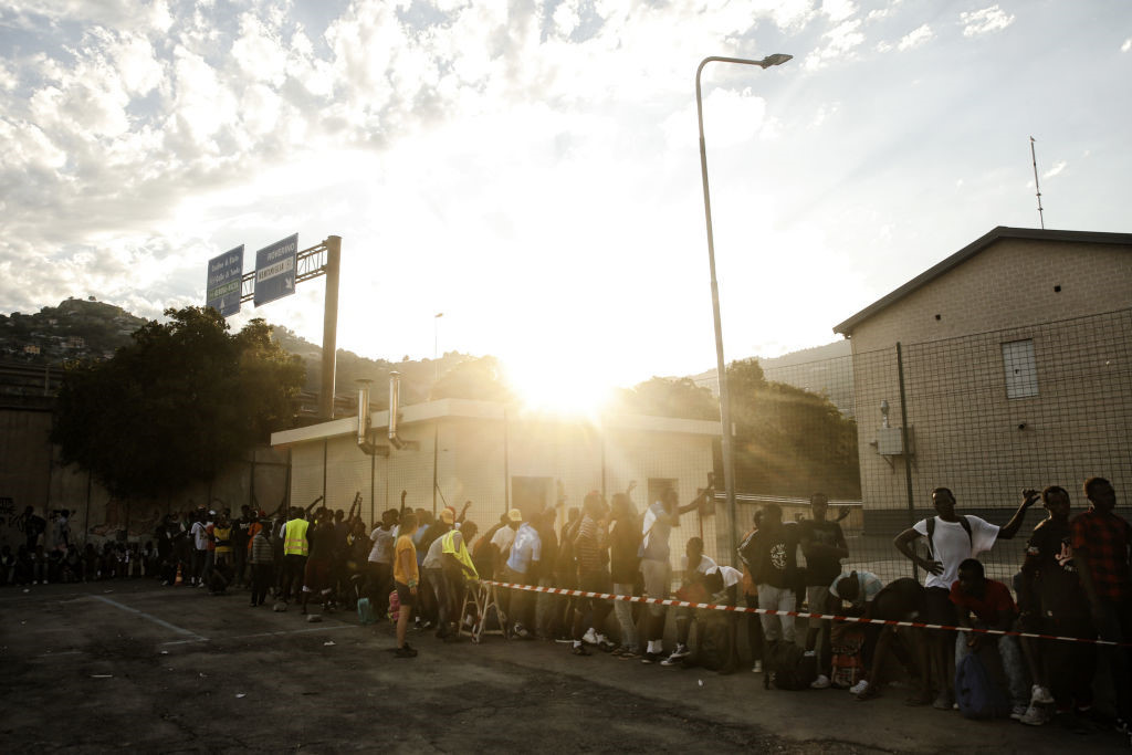 Người tị nạn xếp hàng chờ lấy thức ăn ở Ventimiglia. Ảnh: AFP.