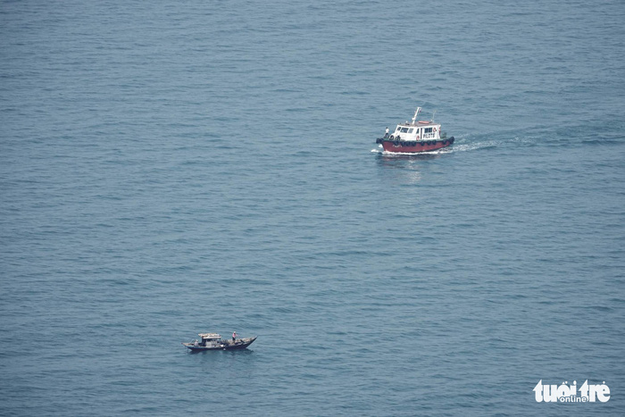 Đến hơn 10h, tiếng còi tàu hụ liên tục trên biển. Sau chừng 10 hồi còi, một khối to lớn xuất hiện trên mặt biển.