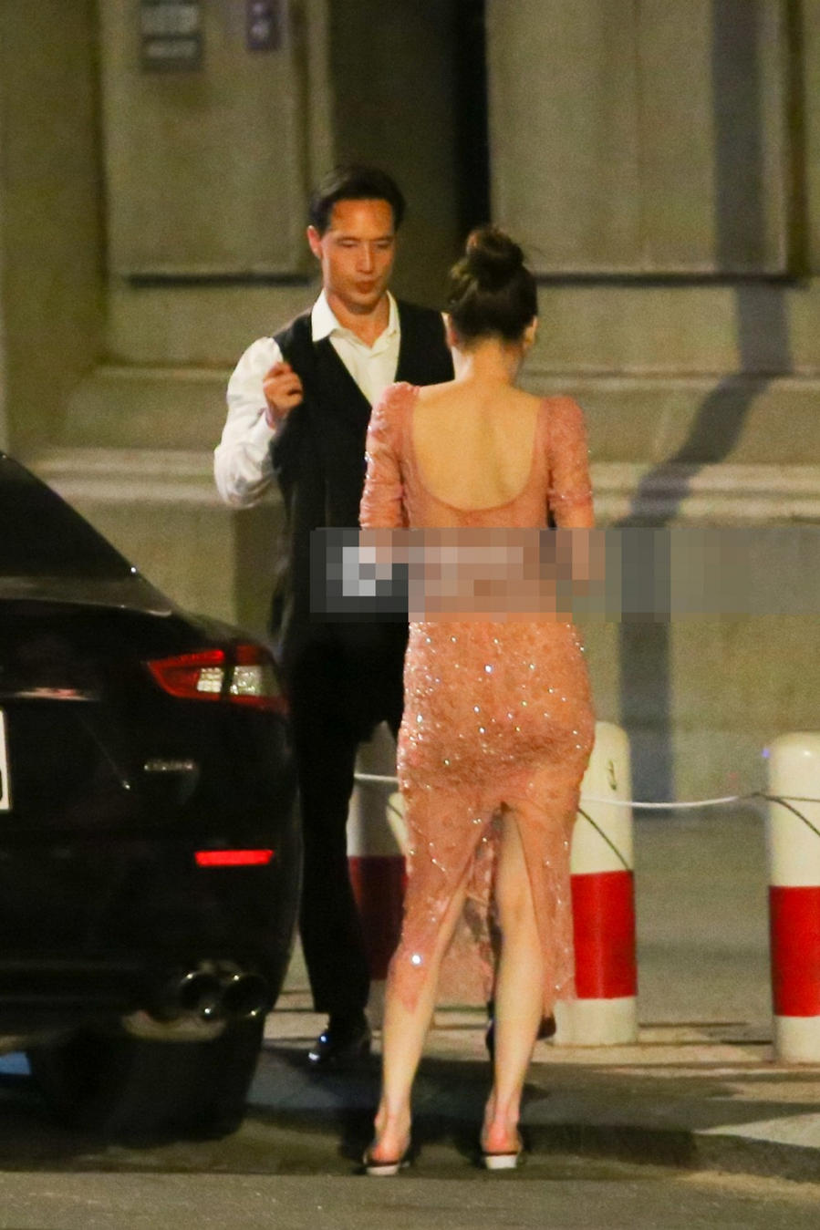 Vì diện chiếc đầm bó sát, cùng hình ảnh chụp nghiêng. Ta có thể nhận thấy vòng 2 của nữ hoàng giải trí khá lớn.