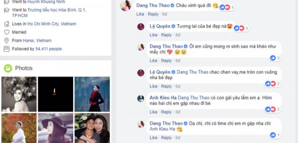 Ngay lập tức, đoạn trạng thái kèm hình ảnh của Hoa hậu Hà Kiều Anh đã nhanh chóng thu hút sự quan tâm từ phía cộng đồng mạng. Theo đó, khi Đặng Thu Thảo thể hiện sự trầm trồ: "Cháu xinh quá đi", ca sĩ Lệ Quyên ngay lập tức đáp lời: "Tương lai của bé đẹp nà" thì Đặng Thu Thảo lại bày tỏ: "Ôi em cũng mong mình sinh sao mà khéo như mấy chị", Lệ Quyên càng động viên: "Đặng Thu Thảo, chắc chắn vậy. Mẹ tròn con vuông nhà bé đẹp". Cùng với đó, Hà Kiều Anh cũng bày tỏ, "Đặng Thu Thảo, có con gái yêu lắm em ạ".