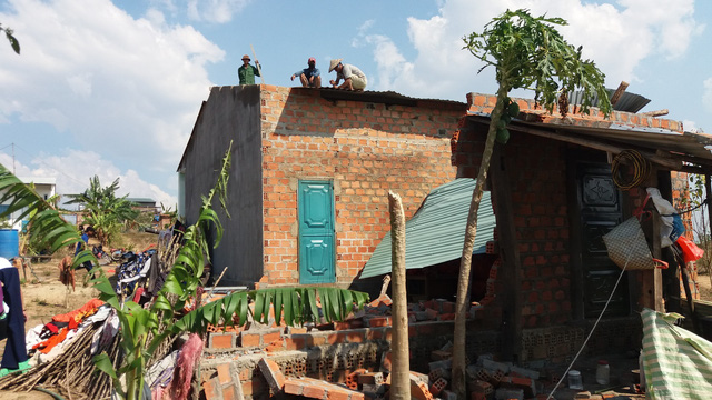 Người dân đang tự sửa chữa nhà bị tốc mái