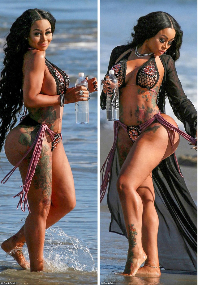 Blac Chyna diện bikini nhỏ xíu trong buổi chụp hình quảng cáo mới nhất tại bãi biển Malibu. Ngôi sao 29 tuổi sở hữu thân hình dao kéo với vòng một và vòng ba siêu khủng.