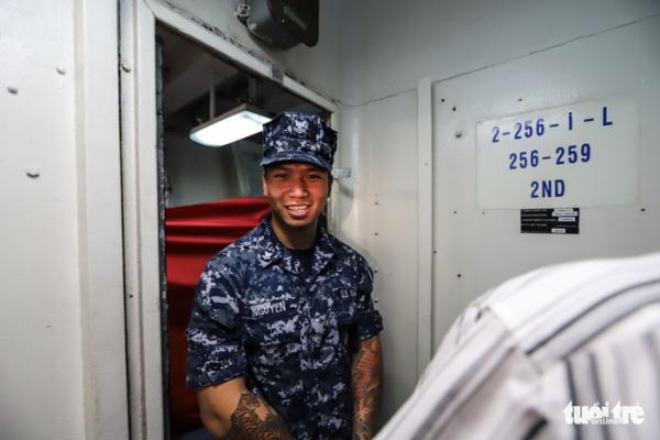 Cậu lính trẻ Paul Nguyễn 24 đang làm nhiệm vụ trên tàu Carl Vinson - Ảnh: NGUYỄN KHÁNH