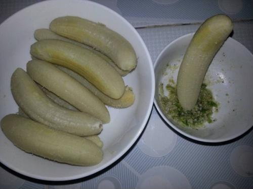 Chuối xanh muối: Chuối xanh gọt bớt vỏ đem ngâm nước muối có vắt thêm chanh. Sau đó cắt xéo chuối nhưng không đứt hoàn toàn rồi ngâm tiếp để loại bỏ bớt nhựa rồi rửa sạch lại. Tiếp theo xếp chuối vào lọ thủy tinh rồi chế hỗn hợp nước ấm pha muối, giấm, đường, gừng, tỏi, ớt vào . Đậy nắp rồi đợi 2 ngày sau là có thể ăn được.