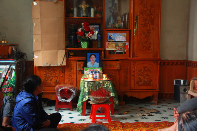 Gia đình dựng tạm bàn thờ để hương khói cho anh Hùng