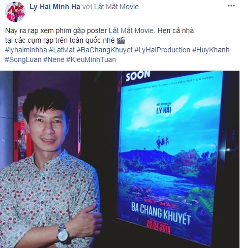 Trên trang cá nhân mới đây của mình, Lý Hải bất ngờ đăng tải hình ảnh anh chụp hình kỷ niệm cùng "đứa con tinh thần" - sản phẩm điện ảnh mới sắp ra mắt do vợ chồng anh đảm nhận vai trò sản xuất. Theo đó, nam ca sĩ "Trọn đời bên em" bày tỏ, "Nay ra rạp xem phim gặp poster 'Lật mặt Movie', hẹn cả nhà tại các cụm rạp trên toàn quốc nhé".