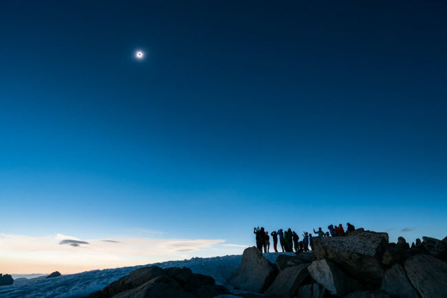 Mọi người chiêm ngưỡng hiện tượng nhật thực toàn phần trên đỉnh Gannet ở bang Wyoming, Mỹ. Ảnh: Jason Hatfield