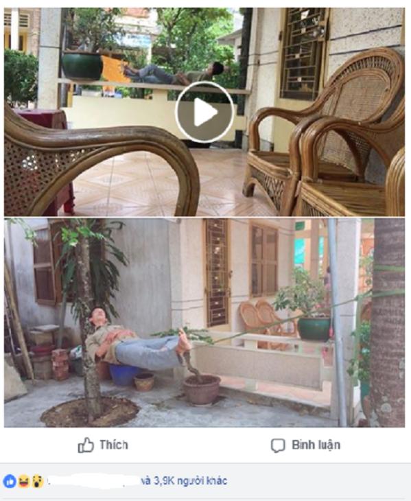 Mới đây, trên một nhóm mạng xã hội, tài khoản Facebook có tên Cường Quốc đã tăng tải đoạn clip ngắn và hình ảnh về một người đàn ông đang say giấc nồng trên dây với dòng mô tả: 'Chắc các bạn đã coi phim Thần điêu đại hiệp rồi đúng không? Cả một tuổi thơ cơ mà!