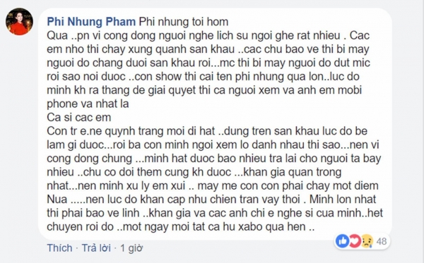Ngưỡng mộ Phi Nhung khi đang hát có người lên sân khấu ăn vạ "mất vàng"