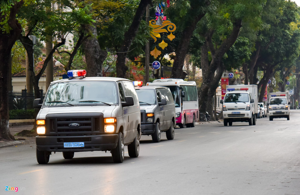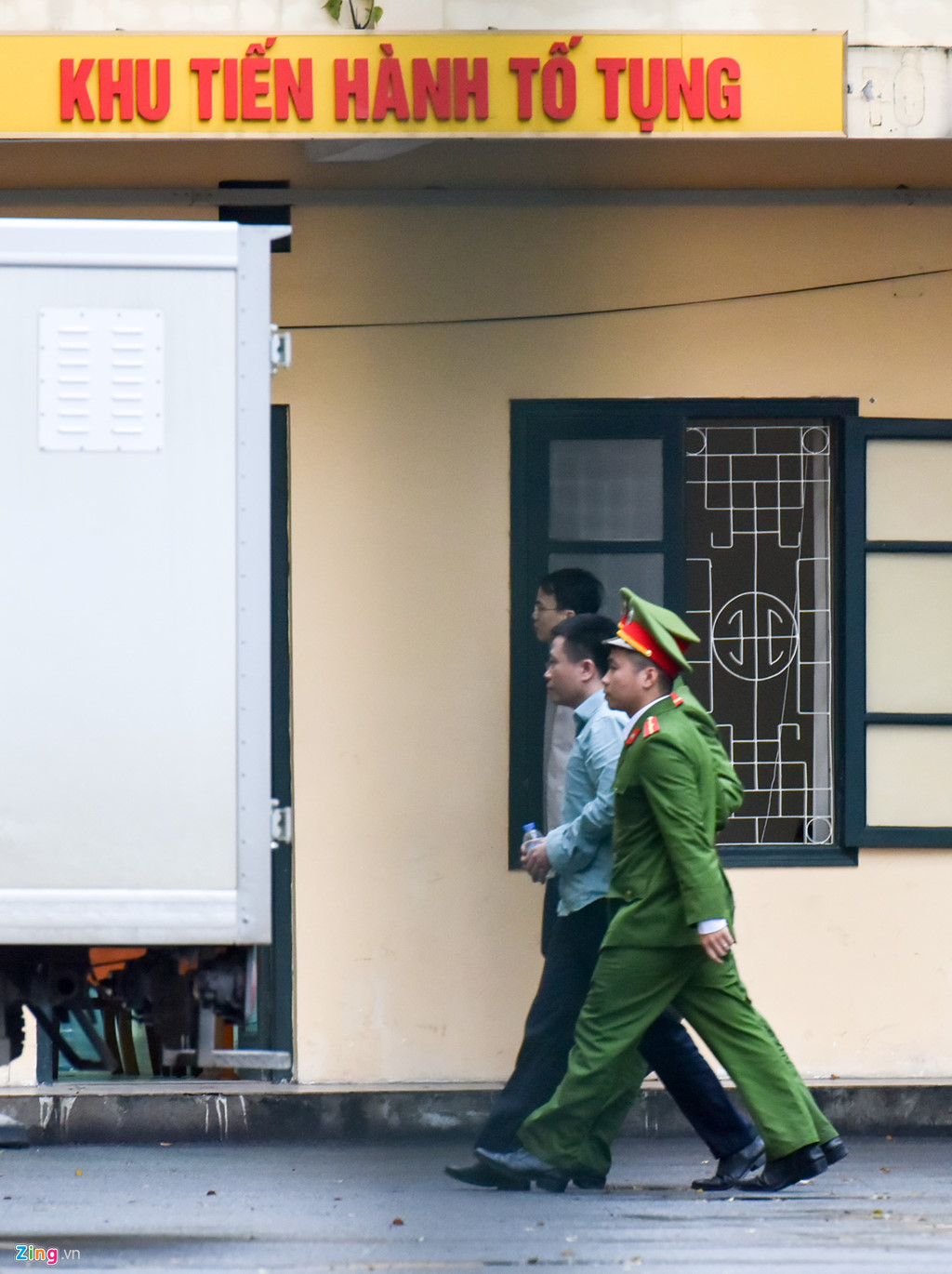 Bên trong tòa, lực lượng chức năng đặt máy soi chiếu. Phía ngoài, Công an Hà Nội lập nhiều vòng kiểm soát quanh khu vực tòa án. Lực lượng bảo vệ gồm CSCĐ, CSGT, Công an quận Hoàn Kiếm và cảnh sát hỗ trợ tư pháp.