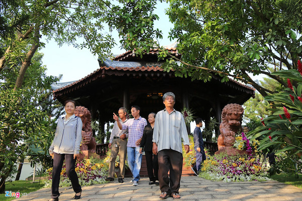 Phần mộ nằm yên bình giữa vườn vây xanh mát.