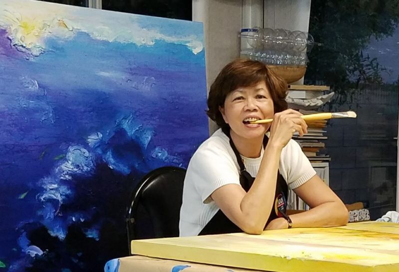 Họa sĩ Ann Phong tại studio của bà.