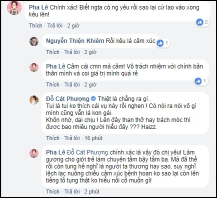 Nhiều sao Việt trong đó có Cát Phượng đã không ngại đụng chạm, tỏ quan điểm không đồng tình, thậm chí dùng lời lẽ nặng nề khi cho rằng, người đẹp "dựa hơi" Trường Giang và những người khác để đánh bóng tên tuổi.