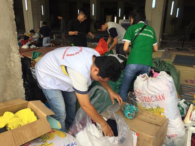 Đội thiện nguyện mang quần áo đến cho người dân tại đây thay đồ