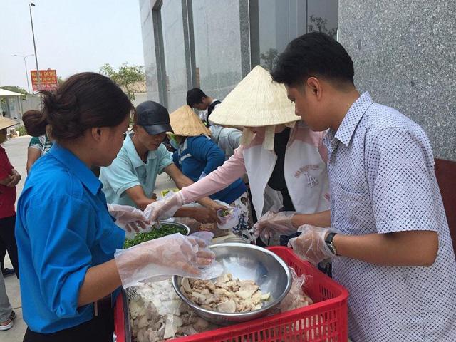 Cơm trưa, và bún phở được làm ngay tại chỗ để phục vụ cư dân