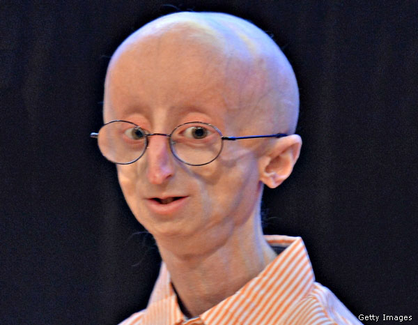 Progeria hay còn gọi là bệnh lão hóa sớm xảy ra khi có lỗi xuất hiện trong gen di truyền của một đứa trẻ. Thông thường, người mắc bệnh này sẽ chết ở tuổi 13 và họ có dấu hiệu lão hóa nhanh gấp hàng chục lần so với người bình thường. Triệu chứng thường là người bệnh bị hói đầu sớm rồi mắc các bệnh về tim, xương, viêm khớp… Hội chứng này rất hiếm gặp, chỉ khoảng 48 người trên thế giới mắc bệnh Progeria nhưng có 1 gia đình xuất hiện đến 5 đứa trẻ mắc căn bệnh lão hóa sớm.