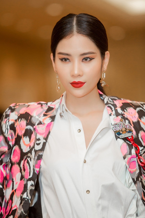 Nam Anh thu hút ánh nhìn của người đối diện khi diện bộ trang phục vest hồng hoạ tiết vô cùng nổi bật.