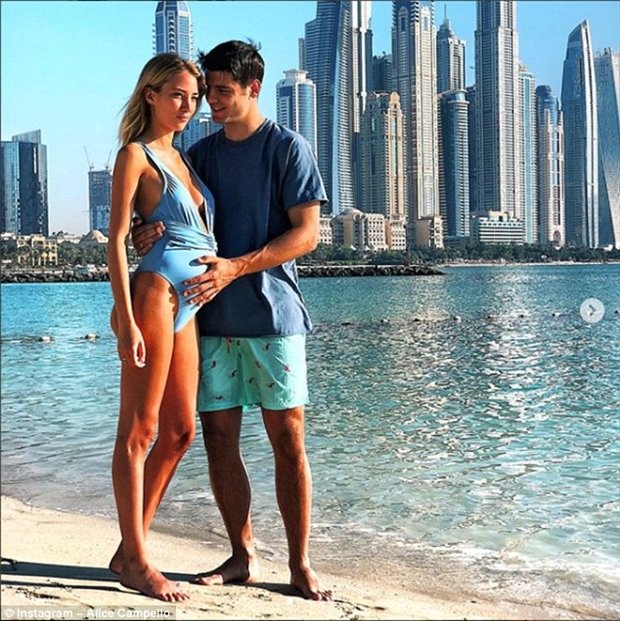 Cầu thủ nổi tiếng Tây Ban Nha Morata vừa cùng cô vợ xinh đẹp Alice Campello đang có mặt tại Dubai. Hai người đang tận hưởng kỳ nghỉ ngắn ngày của mình. Họ sung sướng vì chỉ cần một lần mang thai được cả hai em bé.